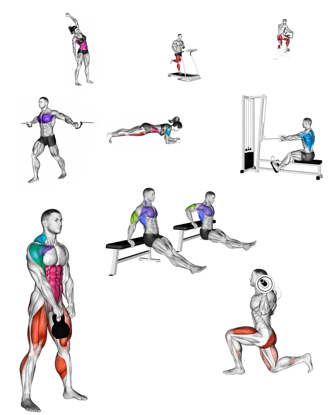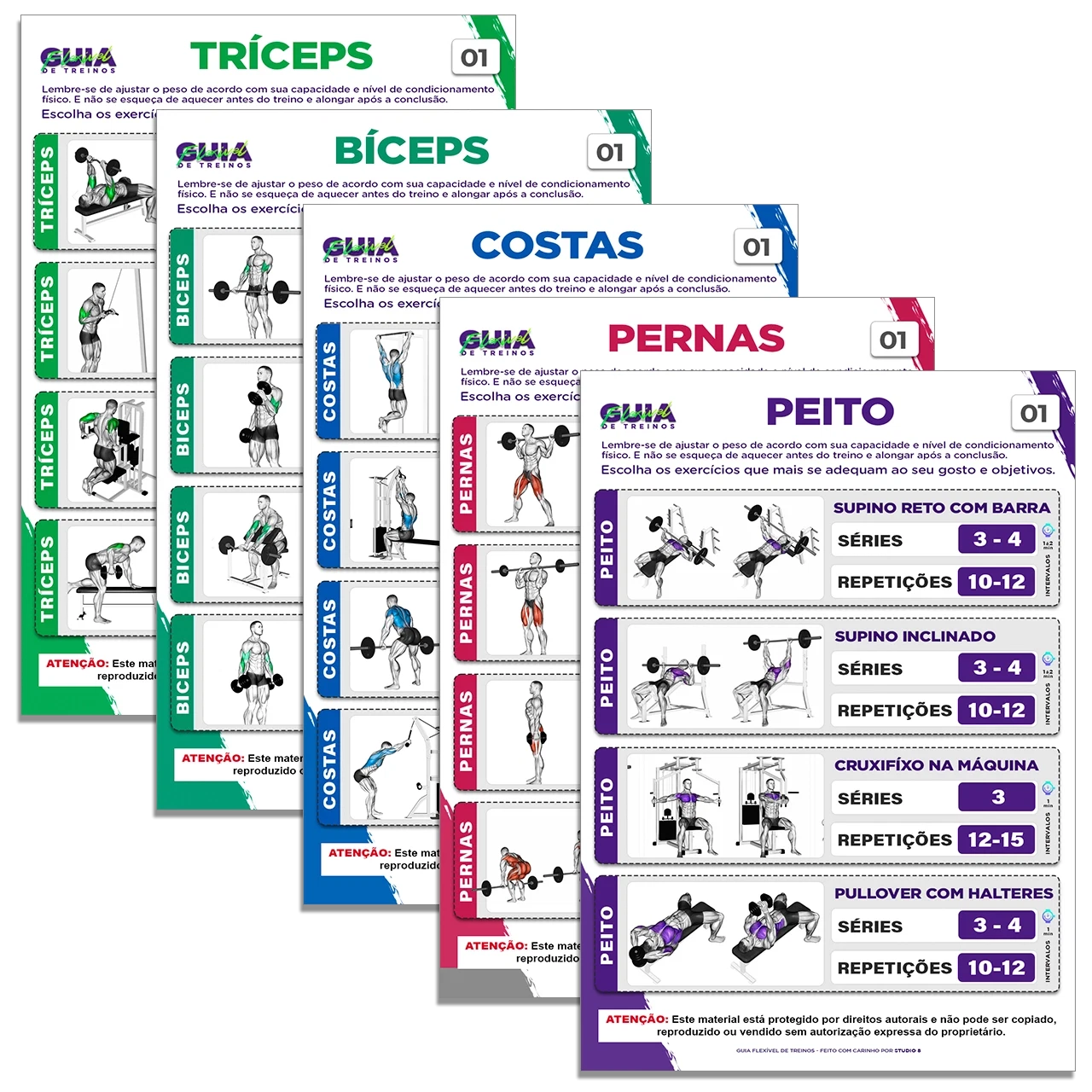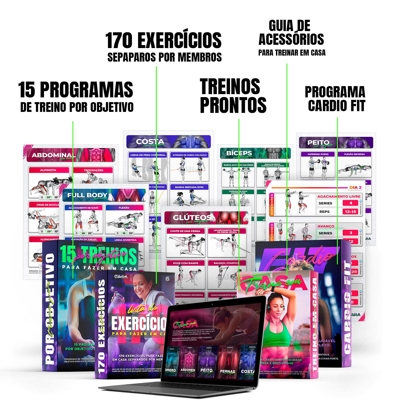 Treinos Prontos e Exercícios Ilustrados organizados por circuito, membros e objetivo.