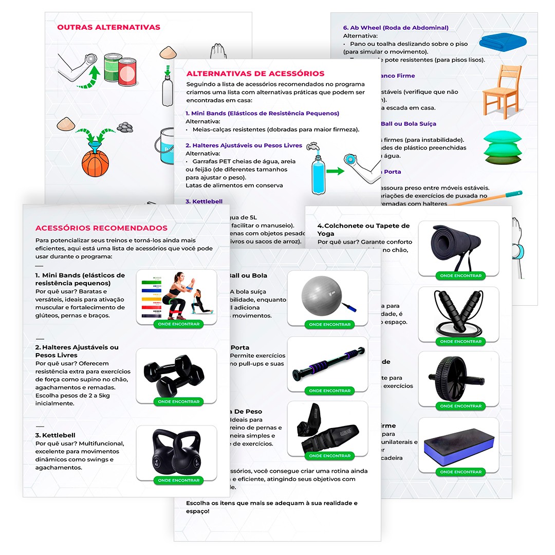 Materiais e Guias práticos essenciais para maximizar seus resultados alinhando sua rotina com atividades física e sua dieta.